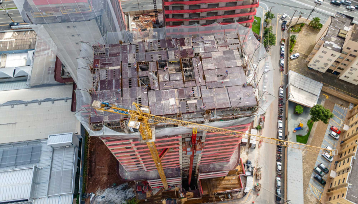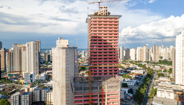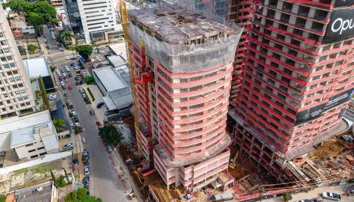 A fluidez na volumetria da fachada do Sync segue o mesmo conceito das outras torres do Cidade Opus, criando uma unidade arquitetônica imponente no skyline da cidade.